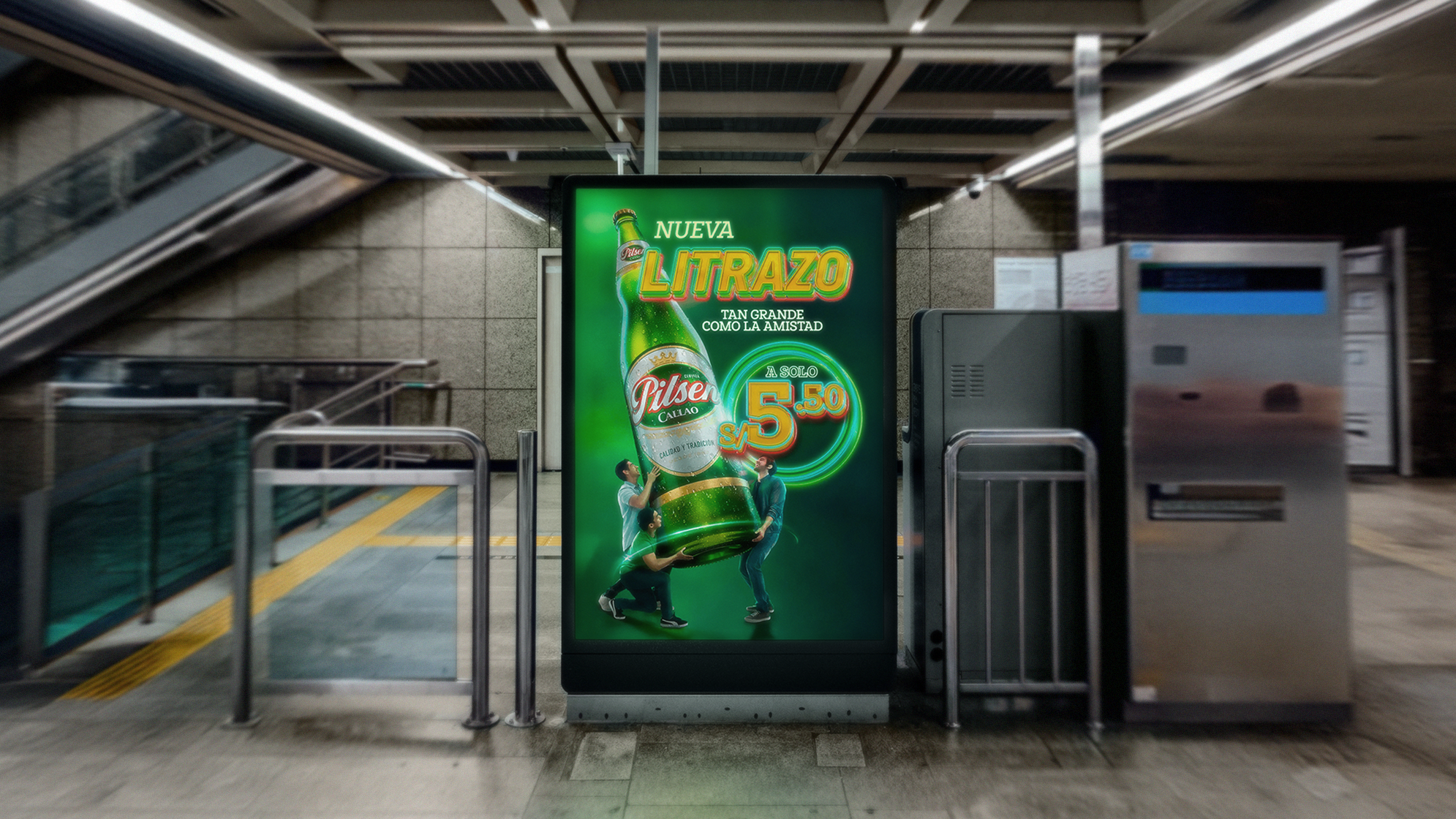The work delivered a set of key visuals for OOH, POS and activation pieces across the country. Design principles were used to ensure the new format and message could be understood in a short time on the street, we focused on photography, scale and shared moments. The clear layout made adaptation to mixed-media easier. The campaign gained strong visibility and drew coverage from marketing outlets, this helped "Litrazo" become noticed nationwide.